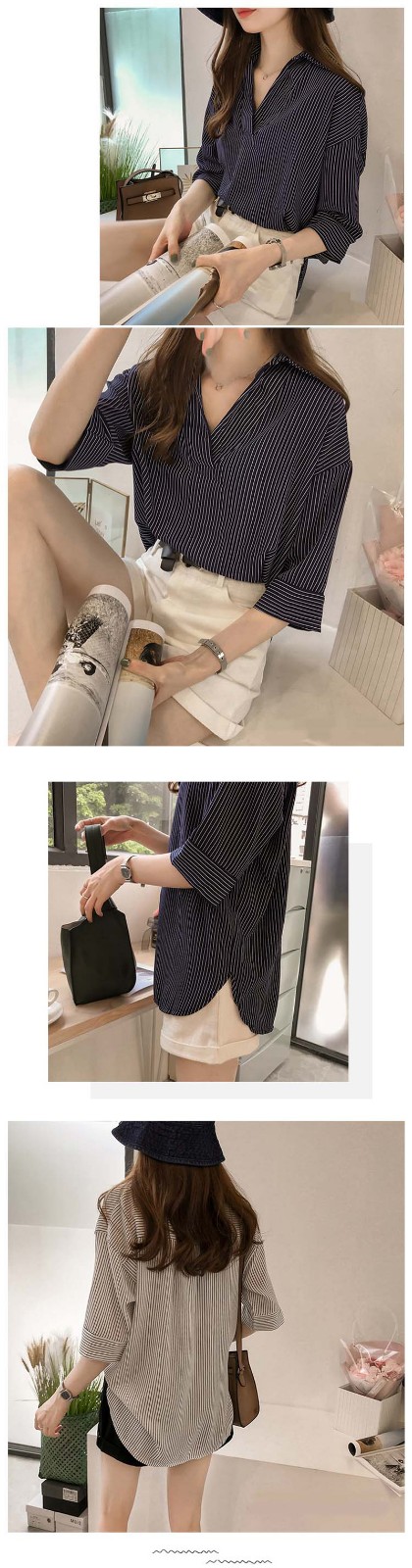 4分鐘前新品上市,勁爆特殺!全場大放送,單件低至NT$432,2020新款夏裝中長款韓版寬松顯瘦條紋襯衫女七分袖,廠家直銷,超值優惠,買到賺到!過後漲價! - 【買一送二】任選3件 僅需NT$1298,單件低至432