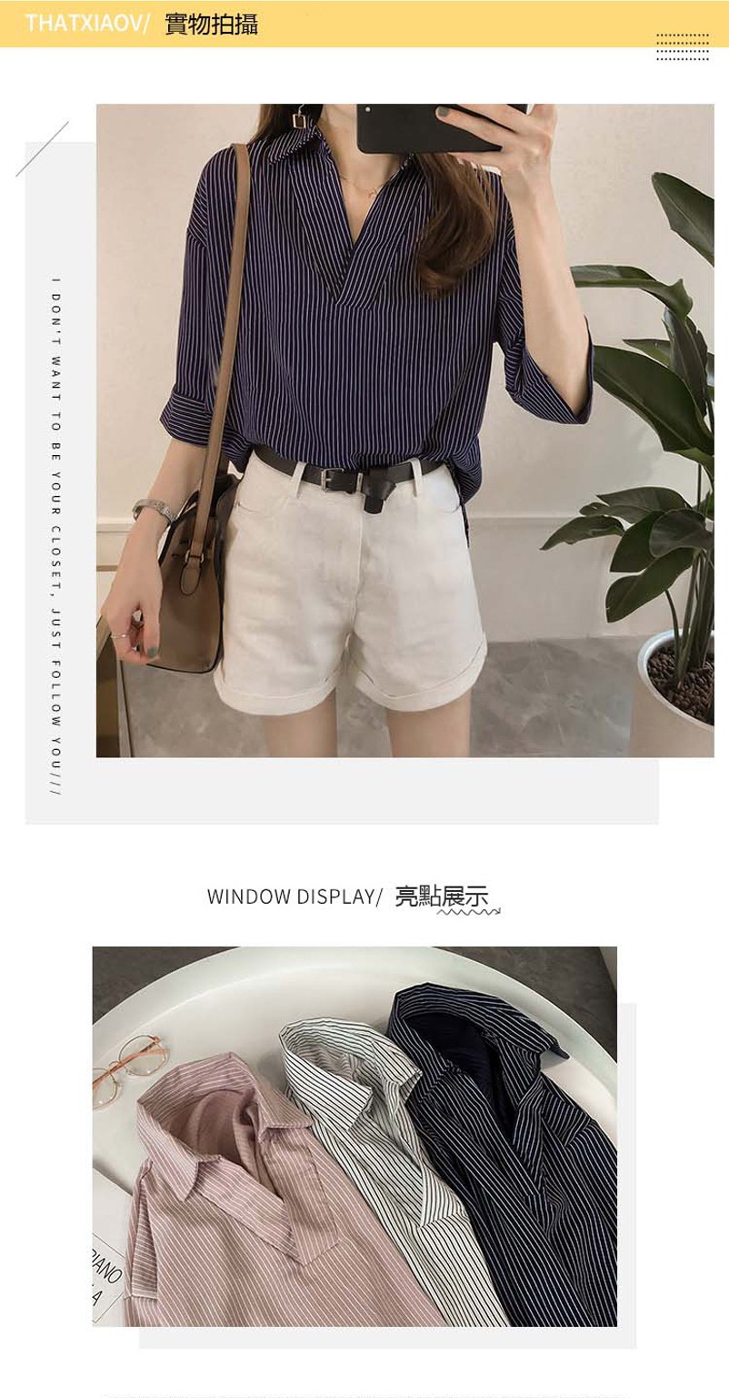 25分鐘前新品上市,勁爆特殺!全場大放送,單件低至NT$432,2020新款夏裝中長款韓版寬松顯瘦條紋襯衫女七分袖,廠家直銷,超值優惠,買到賺到!過後漲價! - 【超級氣質條紋襯衫】任選1件 僅需NT$899